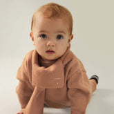 Der kleine Babyschal liegt warm und weich auf der Haut. Er ist gestrickt aus 100 % Merinowolle – nicht juckend, weich und warm. Die Wolle ist RWS-zertifiziert, ein freiwilliger Standard, der das Wohlergehen der Schafe, die die Wolle liefern, und des Landes, auf dem sie grasen, gewährleistet.