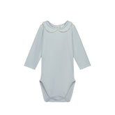 Ein langärmeliger Body mit süßem Kragen, aus einem weichen Bio-Baumwolljersey und ein wenig Elastan für die perfekte Passform. Er hat lockere Schulterpartien und einen Druckknopfverschluss im Beinbereich.