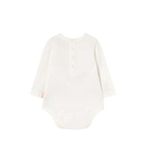 Ein langärmliger Body aus weichster Bio-Baumwolle. Er hat lockere Schulterpartien und einen Druckknopfverschluss im Beinbereich, sowie am oberen Rücken, für ein einfaches An- und Ausziehen.