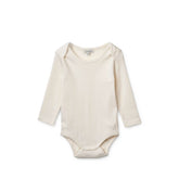 Der gerippte Evig Body ist ein klassischer Baumwollbody für die Garderobe deines Babys. Er ist aus weichem 2x2-Rippstoff gefertigt und hat einen leicht überlappenden Halsausschnitt und eine Schrittöffnung mit Druckknöpfen.