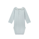 Ein langärmeliger Body mit süßem Kragen, aus einem weichen Bio-Baumwolljersey und ein wenig Elastan für die perfekte Passform. Er hat lockere Schulterpartien und einen Druckknopfverschluss im Beinbereich.