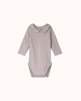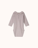 Ein langärmeliger Body mit süßem Kragen, aus einem weichen Bio-Baumwolljersey und ein wenig Elastan für die perfekte Passform. Er hat lockere Schulterpartien und einen Druckknopfverschluss im Beinbereich.