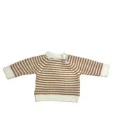 Baby Strickpullover in white/camel gestreift