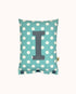 Buchstabenkissen I – Blaugrau auf Türkis mit weißen Punkten