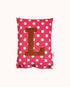 Buchstabenkissen L – Braun auf Dunkelpink mit weißen Punkten