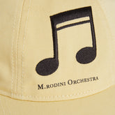Mini Rodini's Cap mit Noten-Print auf der Vorderseite aus 100% zertifizierter Bio-Baumwolle. Für die perfekte Passform ist die Cap hinten verstellbar.