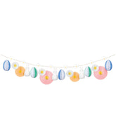 Hängen Sie diese schöne Girlande an eine Wand, einen Türrahmen oder ins Zimmer, um Ihrer Osterparty in Sekundenschnelle einen stilvollen Look zu verleihen. Sie ist mit Wabenhasen, Eiern und Blumen in wunderschönen Frühlingsfarben geschmückt und sorgt für einen Wow-Effekt in jedem Zuhause.