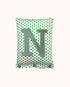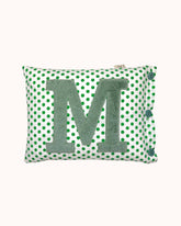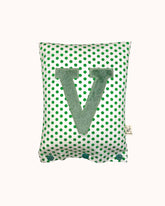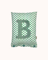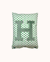 Buchstabenkissen Salbei auf Weiß mit grünen Punkten