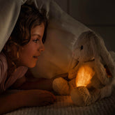 Mit ihren hübschen Schlappohren und ihrem kuschelweichen Plüsch ist Hoppie Hase besonders niedlich. Dank des warmweißen Lichts, das sich in ihrem Bauch befindet und sanft durch sie hindurchscheint, ist sie eine wunderbare Einschlaf-Hilfe. Das Licht hat drei Modi. Bei „ON“ wird es durch Drücken auf den Bauch aktiviert und bleibt bis zu einem erneuten Drücken eingeschaltet. Der Modus „TIMER“ sorgt dafür, dass das Licht nach 30 Minuten erlischt. Ausschalten lässt es sich im Modus „OFF“. Das Nachtlicht kann aus Hoppie entnommen und geladen werden. Ist die Ladung vollständig (Ladekontrollleuchte leuchtet grün, bei rot wird noch geladen), kann es bis zu acht Stunden am Stück leuchten. Das Nachtlicht ist mit einem handesüblichen USB C Ladekabel aufladbar, welches nicht im Lieferumfang enthalten ist. Sie erkennen dieses original Steiff Kuscheltier an seinem „Knopf im Ohr“ aus Edelstahl.