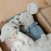 Oma & Opa tragen ihre Nachtwäsche und schöne Schuhe. Die Zigarrenkiste ist ein perfektes Bett für einen erholsamen Schlaf und süße Träume. Erweiter die Garderobe mit lockeren Kleidungsstücken, um ein perfektes Spielset zu erstellen.
