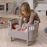 Ein Puppenbett mit großem Spielwert, das zugleich als schönes Dekorationsobjekt dient, wenn es nicht in Gebrauch ist. Ein Bett, in dem das Kind das Kuscheltier oder die Puppe schlafen legen kann. Entworfen nach dem dänischen Designklassiker, dem Sebra Bett, Baby & Junior.