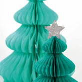 Diese Wabenbäume eignen sich hervorragend als Dekoration für Ihren Partytisch oder Ihr Zuhause. Sie sind aus Seidenpapier gefertigt und jeweils mit einem Stern gekrönt, der mit glänzendem, silbernem, pflanzlichem Eco-Glitter bestreut ist.