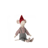 Eine mittelgroße Maus in gemütlicher Weihnachtskleidung, die bereit ist, die wundervollen Weihnachtstage zu genießen.