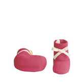 Baby-Schühchen in Form einer Socke. Sie sind aus weichster Bio-Baumwolle und ein wenig Elasthan-Fleece für eine bequeme Passform gemacht. Sie haben ein rippengestricktes, doppellagiges, gefaltetes Bündchen und eine Fischgrätenschnürung zum Anziehen. Das Gray Label Logo ist auf der Sohle des rechten Schuhs aufgenäht.
