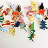 Anstecknadel aus vergoldetem Messing (24 Karat Gold) und zinnoberrotem Harz