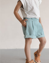 Die Shorts-Version der lockeren Hose kann dank des verstellbaren Gummizugs im Bund hoch tailliert oder tiefer auf der Hüfte getragen werden. Weicher, gewebter Twill mit Waschung für noch mehr Weichheit. Falten vorne und eine verspielte Doppeltasche hinten. Tragen Sie die Hose so wie sie ist oder klappen Sie die Säume hoch für eine kürzere Länge.