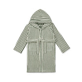 Halten Sie Ihr Kleines nach dem Baden mit dem Leo-Bademantel mit Kapuze wohlig warm und bequem. Der Bademantel aus flauschigem und super saugfähigem Frottee aus Bio-Baumwolle verfügt über einen befestigten Bindegürtel und Druckknöpfe, die ihn eng und gerafft halten.