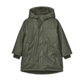 Dieser lange, wattierte Regenmantel für Kinder ist ideal, um an kühlen, regnerischen Tagen warm und trocken zu bleiben. Er besteht aus 100% recyceltem Polyester mit einer wasserdichten PU-Beschichtung und hat gummierte Reißverschlüsse sowie Nieten und Knöpfe für einen sportlichen Look. Das OEKO-TEX® zertifizierte Futter bietet zusätzliche Isolierung und sorgt für Komfort und Schutz.