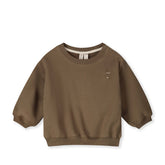 Dieser bequeme Unisex-Pullover ist aus weicher Bio-Baumwolle gefertigt und mit kuscheligem Baumwoll-Fleece gefüttert. Er hat verlängerte Schultern, voluminöse lange Ärmel und gerippte Bündchen, Saum und Kragen. Für einfaches Anziehen, ist ein doppelter Druckknopfverschluss an der linken Schulter eingearbeitet.