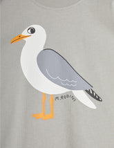 Ein kurzärmliges T-Shirt mit großem Möwen-Aufdruck auf der Vorderseite. Hergestellt aus 100% GOTS-zertifizierter Bio-Baumwolle, einem lockeren Schnitt und überschnittenen Schultern.
