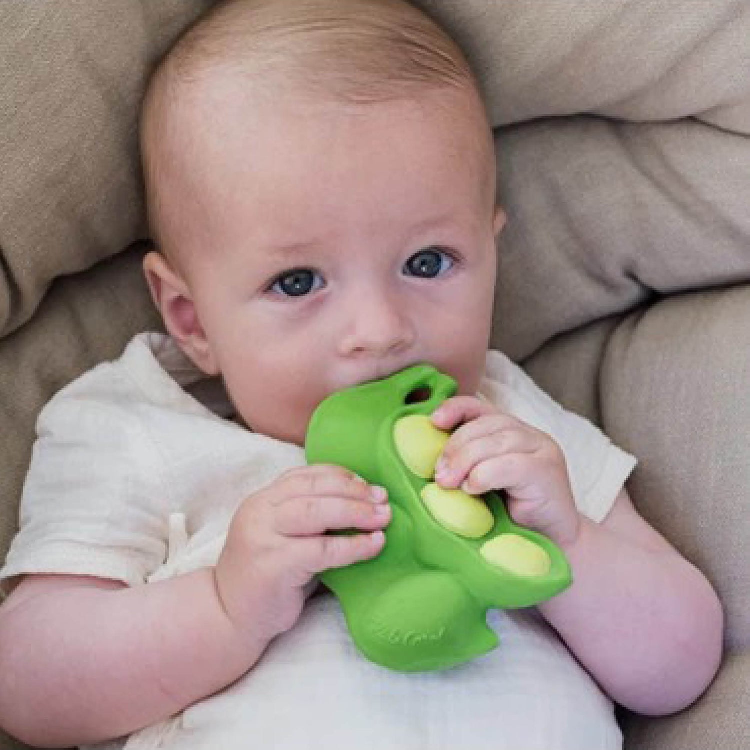 Ni hao Keiko! Keiko die Edamame ist ein kaubares Babyspielzeug zum Zahnen, Baden und sensorischen Spielen. Seine realistischen Texturen helfen, die Sinne von Babys zu stimulieren und Zahnfleisch zu entlasten. Führen Sie Kinder mit diesem vegetarischen Beißring in einen gesunden Lebensstil ein!