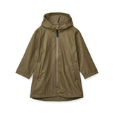 Dieser lange Regenmantel für Kinder ist ideal, um an regnerischen Tagen trocken zu bleiben. Er besteht aus 100% recyceltem Polyester mit einer wasserdichten PU-Beschichtung und hat gummierte Reißverschlüsse.
