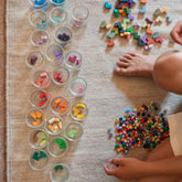 Mis Match & Bloom ist eine farbenfrohe Kollektion aus Holzpunkten und L-förmigen Holzformen. Sie eignen sich ideal zum freien Gestalten, für Mosaike oder zum Experimentieren mit geometrischen Konzepten. Es ergänzt das „Mis & Match Set“ und verleiht ihren Kreationen zusätzliche mehr Tiefe.