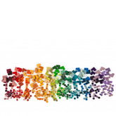 Über 400 kleine Holzteile in zwei Formen und 36 Farbverläufen des Regenbogens. Inklusive GOTS-zertifiziertem Baumwollbeutel.