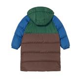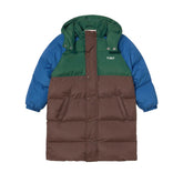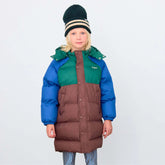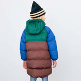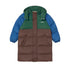 Dieser wasserabweisende Puffermantel hat eine abnehmbare Kapuze sowie Gummizüge an den Handgelenken. Er hat außerdem zwei Taschen und kuschelweiches Futter in den Taschen.