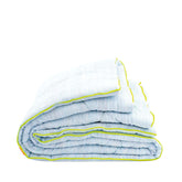 A blanket to snuggle up in, both in summer and winter. The blanket is wonderful as a cuddly blanket in bed or on the sofa, as a bedspread or crawling blanket for the little ones. Thanks to the soft padding, your little ones are well protected on the floor. Each blanket brings a touch of originality with graphic or floral prints by Petit Pan.