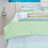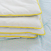A blanket to snuggle up in, both in summer and winter. The blanket is wonderful as a cuddly blanket in bed or on the sofa, as a bedspread or crawling blanket for the little ones. Thanks to the soft padding, your little ones are well protected on the floor. Each blanket brings a touch of originality with graphic or floral prints by Petit Pan.