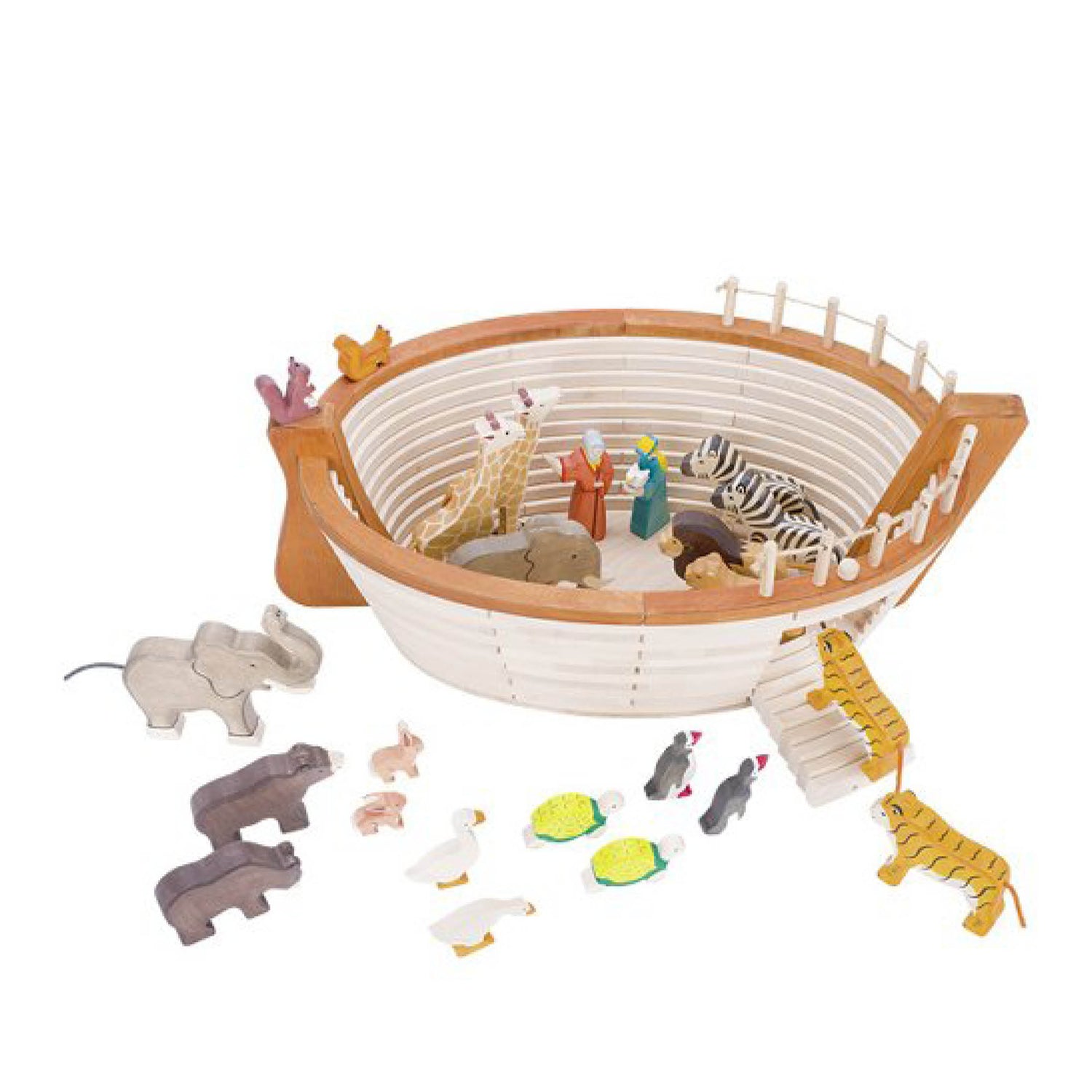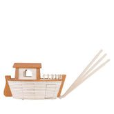 Hatch up to enter the ark. The cabin and deck can be removed to make it easy to play with. Once all the animals are on board, the ark is set in motion by means of a roller bar. Without decoration!
