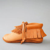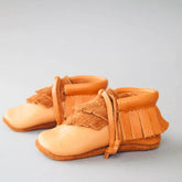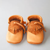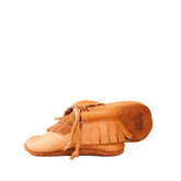 All moccasins are handcrafted by our team using chrome-free vegetable tanned leather. The soft leather soles are suitable for indoor and dry outdoor use.