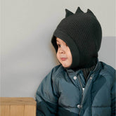 The children's knitted balaclava keeps your head and neck warm in cold weather. It is made of soft organic cotton.