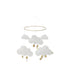 The cloud mobile consists of felted clouds with silver or gold colored droplets. The clouds are attached with transparent thread