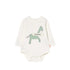 A long-sleeved bodysuit made from the softest organic cotton. It has loose shoulders and a snap fastener on the legs and upper back for easy dressing and undressing.