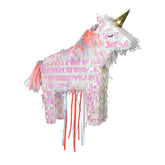 This beautiful unicorn will be the center of attention at any magical party. It has shimmering and iridescent fabric ruffles, a shiny golden horn and a mane and tail made of colorful ribbons.