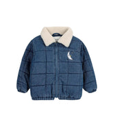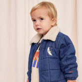 The quilted denim jacket for babies is made to keep up with the playful moments. This piece is sure to become their new favorite. They will feel warm and protected on the coldest days of the year while exploring the world around them.