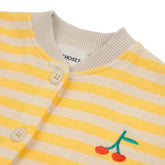 With garments such as the long-sleeved overall with yellow stripes, Bobo Choses wants to stimulate the imagination of little ones. With a playful cherry motif, they are encouraged to invent their own stories and venture into the vast universe that surrounds them during their playtime and mischievous adventures.