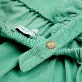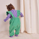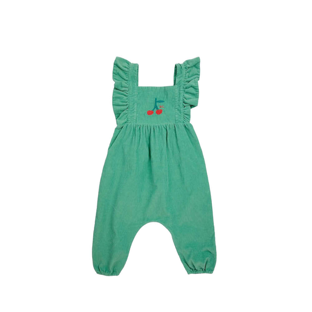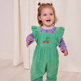 The green microcord overall, decorated with a pair of adorable cherries on the chest, inspires babies' imagination to invent stories full of new and undiscovered characters.