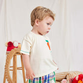 A comfortable t-shirt made from soft organic cotton for babies and toddlers, with cute embroidered tomato details. The large press studs on the left shoulder make it easy to put on and take off.