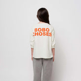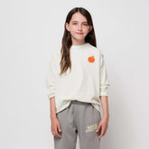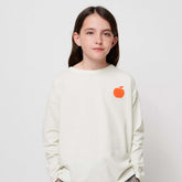The "Poma" long-sleeve t-shirt, made from recycled cotton, features a breathable, off-white fabric and a vibrant red-orange print on the front and back. Its relaxed fit ensures maximum comfort and freedom of movement, while the crew neck provides a flattering silhouette. This versatile t-shirt is suitable for a variety of occasions.