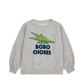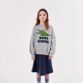 Inspire children to explore the world around them and create stories from new perspectives. The Talking Crocodile sweater in grey, with a playful drawing of this animal with its mouth wide open, turns fairy tales on their head.