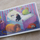 It's wonderful to follow how the little gorilla steals the zookeeper's key and then the zoo animals, from elephants to armadillos, follow the tired keeper into his bedroom. And if all of them hadn't responded so politely to his wife's "Good night, darling," they might have stayed there...