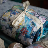 This reversible and hand-painted quilt from Forivor, made from the softest organic cotton, takes you on a journey through day and night and inspires magical underwater dreams. It's a soft quilt that transforms dreams into something magical. It can be used as a bedspread, cuddle blanket, or crab & play blanket, and offers lots of little details to discover.