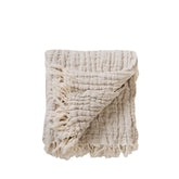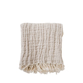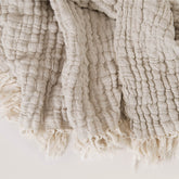 Garbo&Friends Mellow blankets are made from a combination of 55% linen and 45% cotton, which gives this blanket a beautiful structure. The blanket has a medium thickness so it can be used anywhere in the house. It is double sided and features the Garbo&Friends signature embroidered G. The Kale color is a beautiful pale green, the color is the result of the two layers merging together in the fabric.