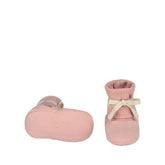 Baby booties in the shape of socks. They are made from the softest organic cotton and a little elastane fleece for a comfortable fit. They have a rib-knitted, double-layered, folded cuff and a herringbone lacing for pulling on. The Gray Label logo is sewn on the sole of the right shoe.