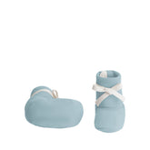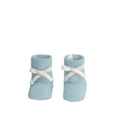 Baby booties in the shape of socks. They are made from the softest organic cotton and a little elastane fleece for a comfortable fit. They have a rib-knitted, double-layered, folded cuff and a herringbone lacing for pulling on. The Gray Label logo is sewn on the sole of the right shoe.