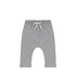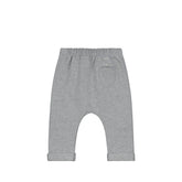 These pants are made from soft organic cotton fleece with a little elastane for a comfortable fit. They have an elastic waistband with drawstring and a right back pocket. The leg is slightly tapered and has folded hems. The Gray Label logo is sewn just above the back pocket.