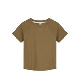 This short-sleeved T-shirt is made from the softest organic cotton jersey. It has a ribbed crew neck, fine quilting and a rounded hem.